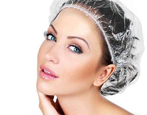 50PCS Disposable Shower Caps, Plastic Clear Thickening Bath Hair Cap and Thick Waterproof Bath Caps for Hair Treatment, Spa, Hotel and Hair Solon, Home Use,Portable Travel (Size 44CM) : Beauty & Personal Care