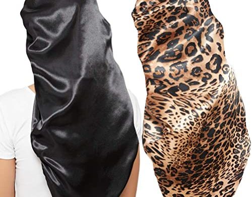 Read More...2 Pcs Hair Bonnets for Women Satin, Black Leopard Soft Elastic Band Silky Sleeping Cap Big Bonnets for Women Bonnet for Braids