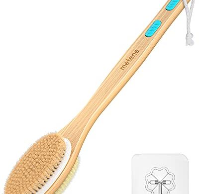 Read More...Metene Shower Brush with Soft and Stiff Bristles, Exfoliating Skin and A Soft Scrub, Double-Sided Brush Head for Wet or Dry Brushing, Specially Long Wooden Handle Cleans The Body Easily