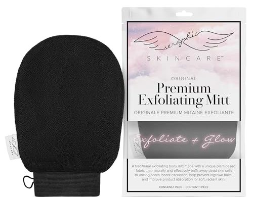 Read More...Seraphic Skincare Korean Exfoliating Mitts (1pc) Microdermabrasion at Home, Exfoliating Gloves Visibly Lift Away Dead Skin, Great for Spray Tan Removal or Keratosis Pilaris, Made of 100% Viscose Fiber
