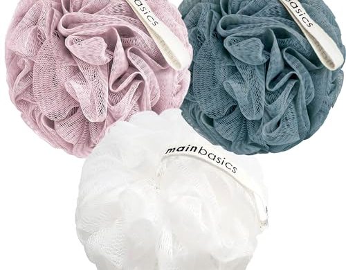 MainBasics Bath Shower Loofah Sponge Pouf Body Scrubber Exfoliator (Set of 3) : Beauty & Personal Care