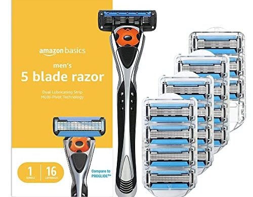 Read More...Amazon Brand – Solimo 5-Blade MotionSphere Razor for Men with Dual Lubrication and Precision Trimmer, Handle & 16 Cartridges (Cartridges fit Solimo Razor Handles only)
