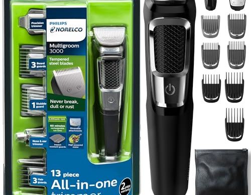 Read More...Philips Norelco Multigroomer All-in-One Trimmer Series 3000, 13 Piece Mens Grooming Kit, for Beard, Face, Nose, and Ear Hair Trimmer and Hair Clipper, NO Blade Oil Needed, MG3750/60