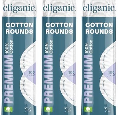 Read More...Cliganic Premium Cotton Rounds for Face (300 Count) – Makeup Remover Pads, Hypoallergenic, Lint-Free | 100% Pure Cotton